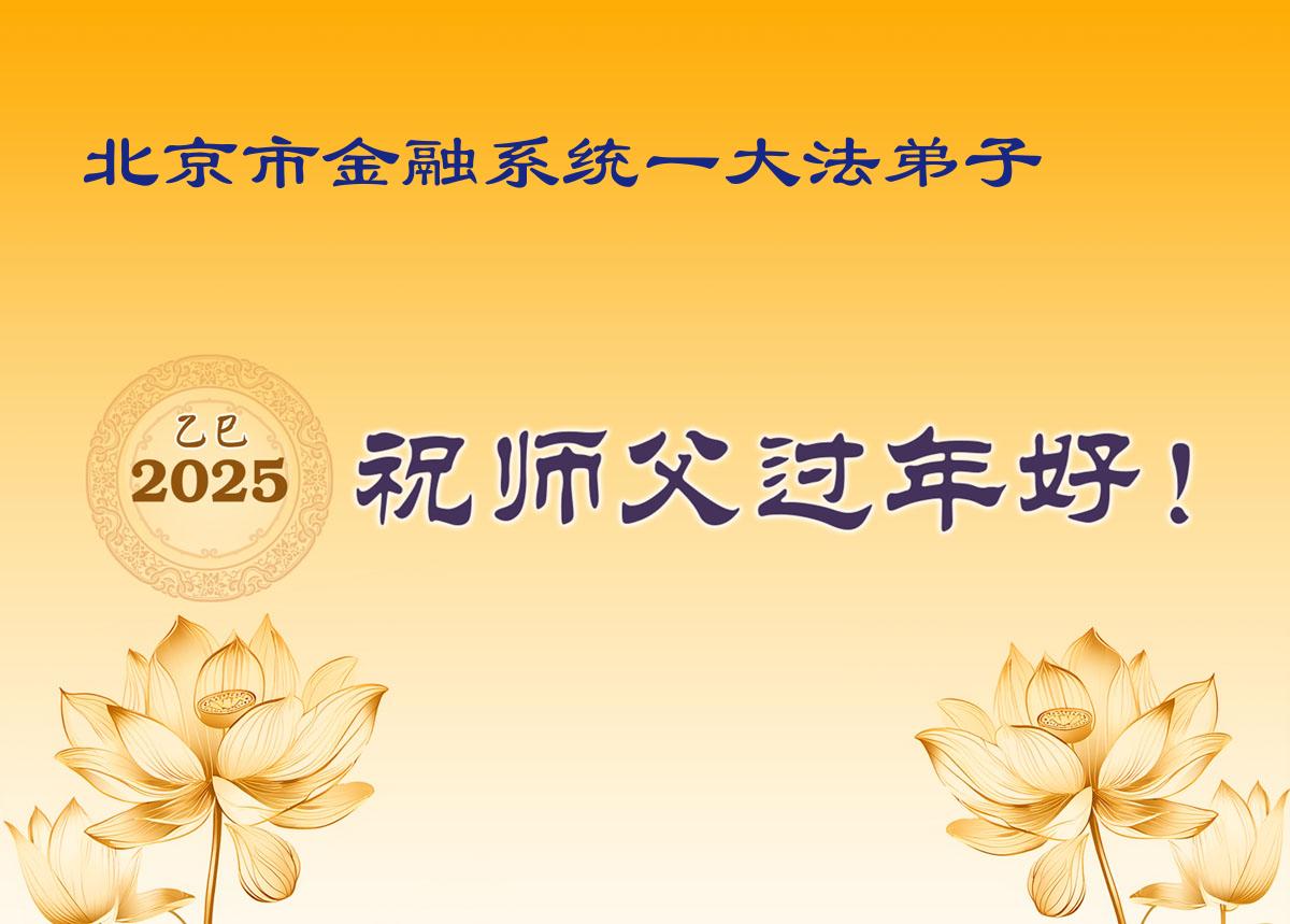 中国大陆医疗行业全体大法弟子恭祝慈悲伟大的师尊新年好! 感恩师父为众生所付出的一切!师父您辛苦了!圣恩浩荡!弟子们永远感恩师尊的慈悲救度! 中国大陆医疗行业全体大法弟子叩拜 二零二五年一月二十六日 北京市金融系统一大法弟子恭祝师父新年好!给师父拜年啦!