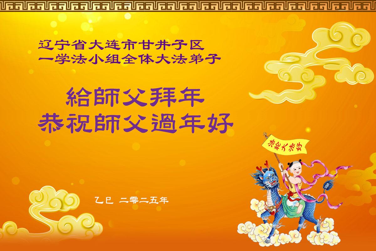 辽宁省大连市甘井子区一学法小组全体大法弟子恭祝师父新年快乐!