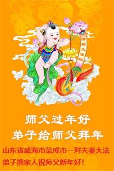 山东省威海市荣成市一对夫妻大法弟子携家人恭祝师尊新年快乐!
