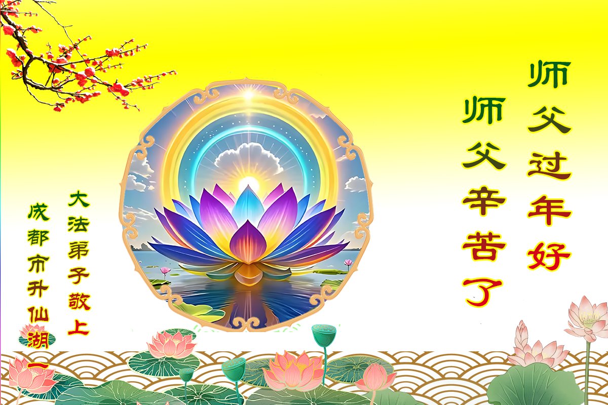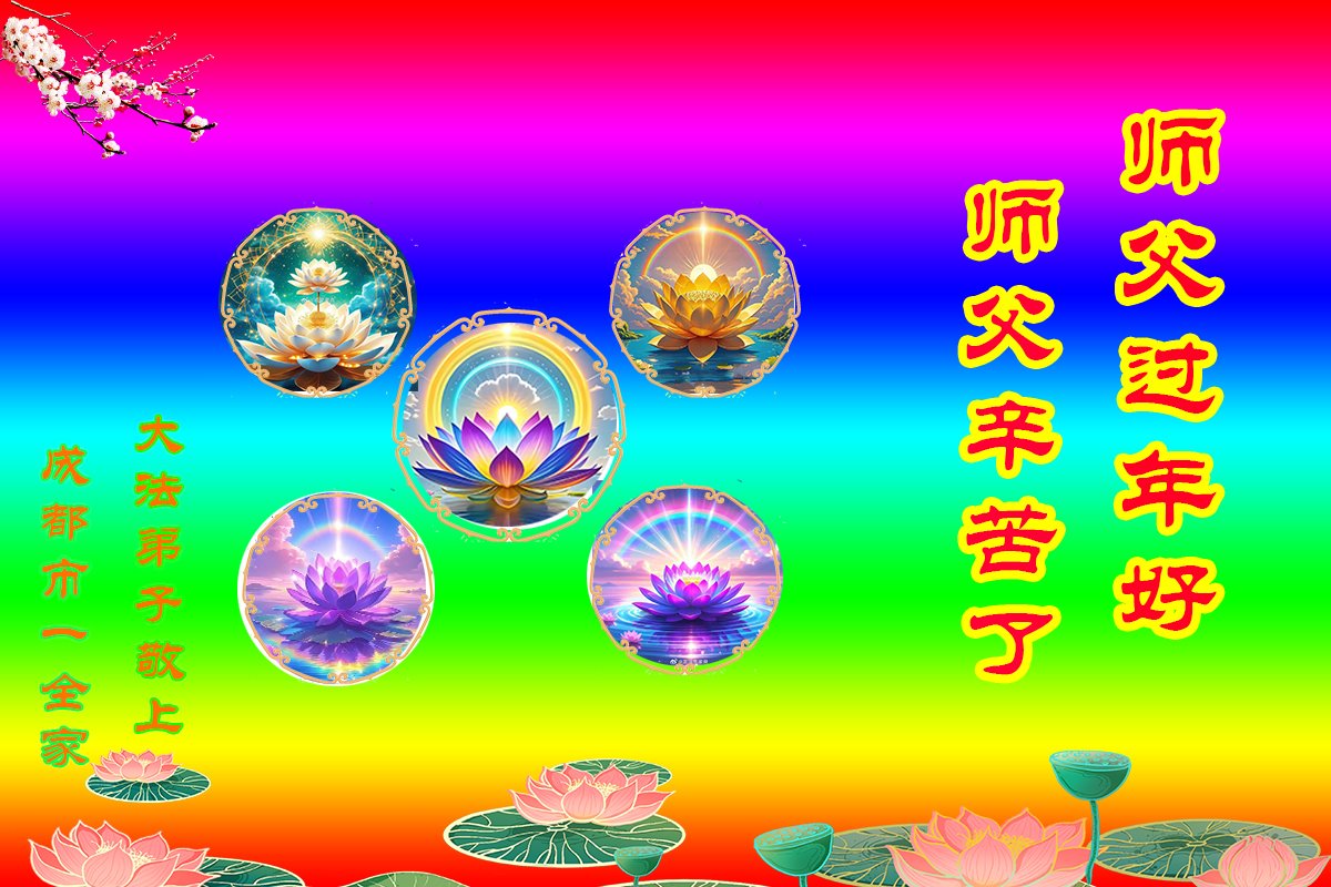 尊敬的师父新年好!弟子感恩师父慈悲救度!弟子给师父拜年啦! 四川成都一大法弟子叩拜 二零二五年一月二十六日 四川省成都市一大法弟子全家恭祝师尊新年快乐!