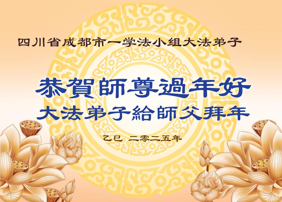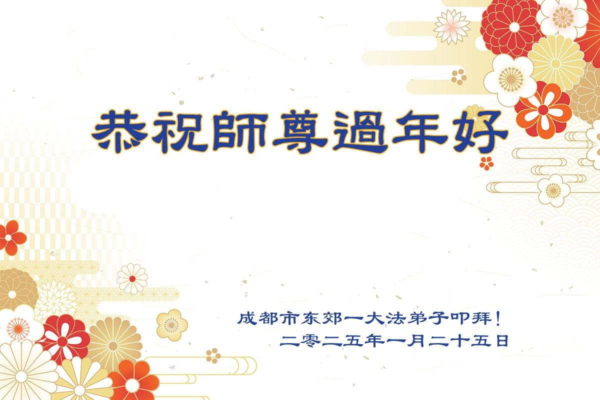 在新的一年里我们要更加勇猛精進,做好三件事,做到实修,提高心性,跟上正法進程,助师正法。 四川省成都市彭州市一学法小组全体大法弟子 二零二五年一月二十六日 四川成都市一大法弟子恭祝师尊新年好!