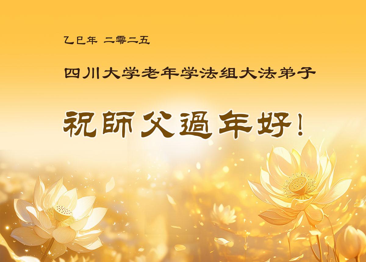 【明慧网二零二五年一月三十日】 四川大学老年大法弟子学法组恭祝慈悲伟大的师父过年好!