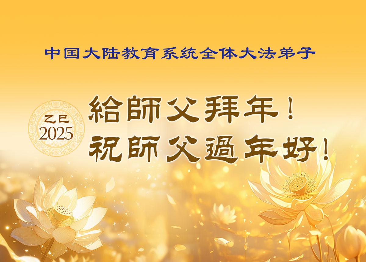 师父,您辛苦了!人间的语言无法表达弟子对师父的感恩之情,弟子唯有精進实修,兑现誓约,助师正法,珍惜师父延续的分分秒秒,加倍的做好三件事,多多救人,圆满达成师父的洪愿! 山东临沂教育界大法弟子叩拜 二零二五年一月二十六日 广东广州教育界大法弟子恭祝师父过年好!