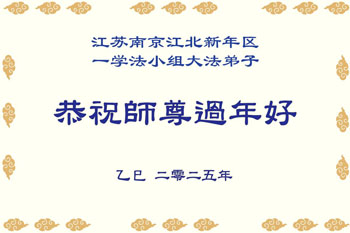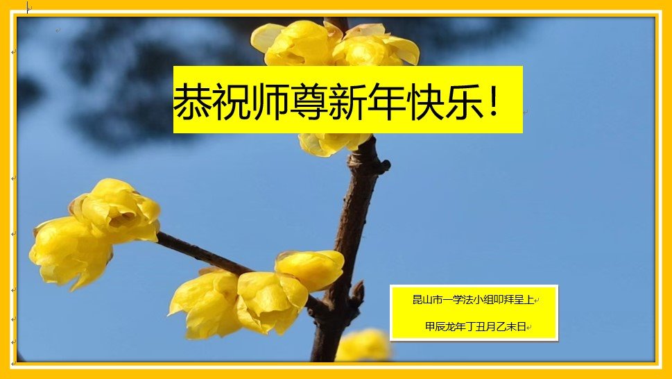 【明慧网二零二五年一月三十日】 江苏省苏州市昆山市5人学法小组大法弟子恭祝师父新年快乐!