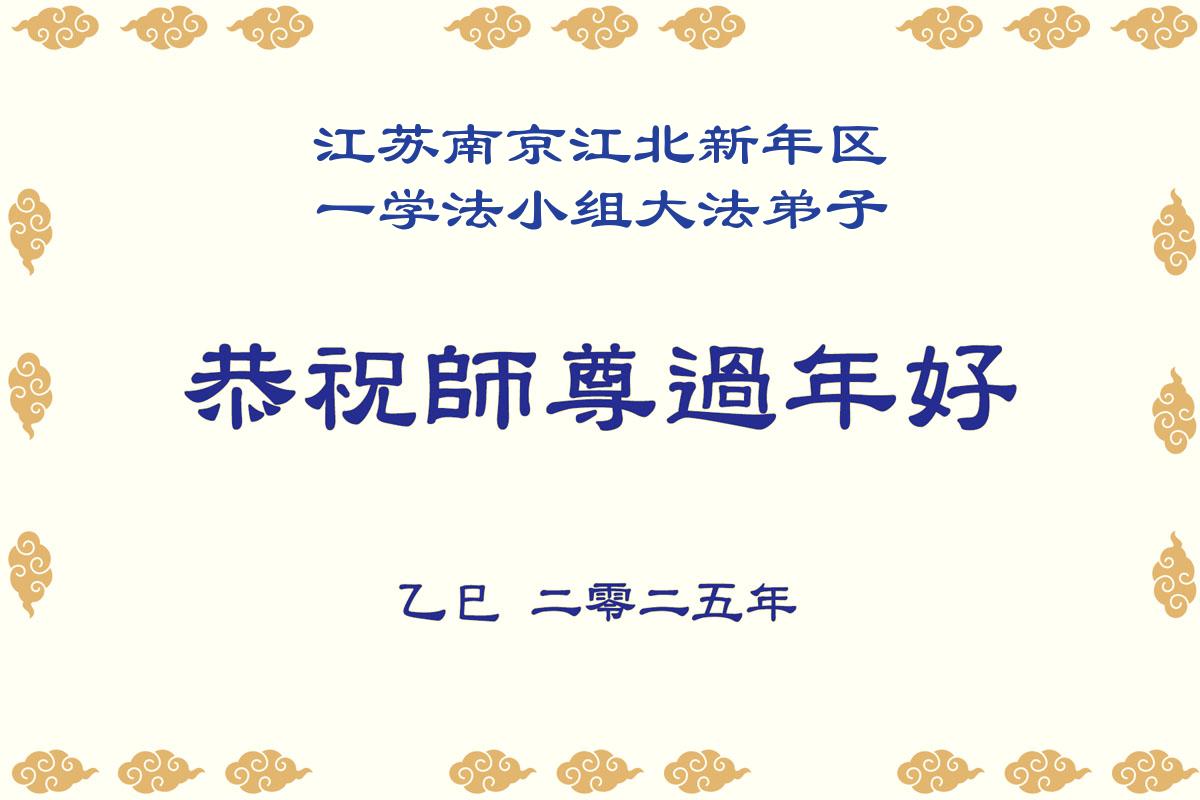 恭祝慈悲伟大的师父过年好!弟子遥拜师父。 江苏省南通市六名老年大法弟子叩拜师父 二零二五年一月二十六日 江苏南京江北新年区一学法小组大法弟子恭祝师尊过年好!
