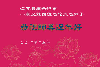 我们兄妹四位都是师父的真修弟子,都非常想念师父,我们向师父保证一定互相提醒,比学比修,提高心性,护师护法,助师正法。 江苏连云港市一家兄妹四位大法弟子叩拜 二零二五年一月二十六日 江苏省常州市老炼功点大法弟子恭祝师父过年好!