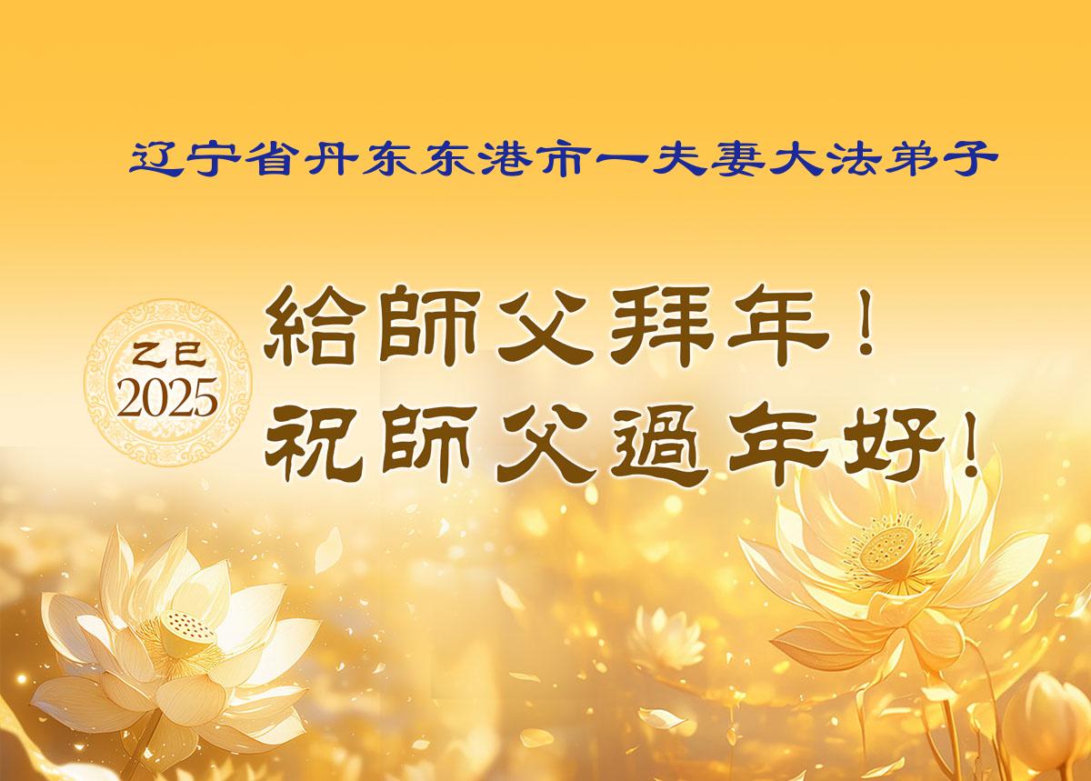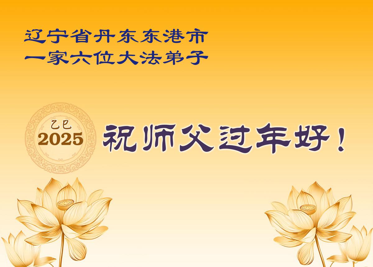 【明慧网二零二五年一月三十日】 辽宁省丹东东港市一家六位大法弟子恭祝慈悲伟大师尊新年快乐!