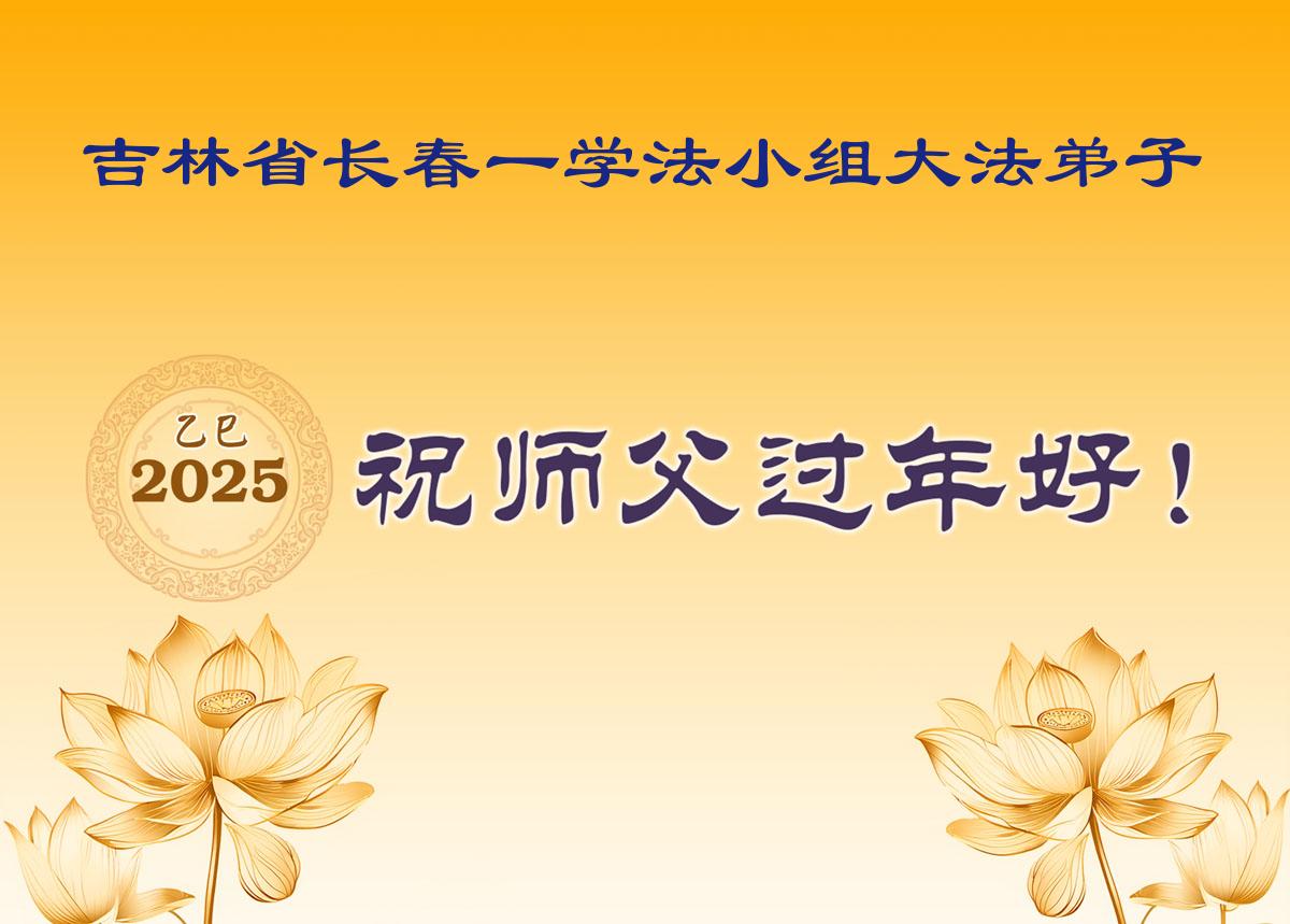 师尊新年快乐!感恩师父慈悲救度!弟子们,精進实修,跟师父回家。 长春一学法小组大法弟子 二零二五年一月二十六日 长春大法弟子恭祝师尊新年好!