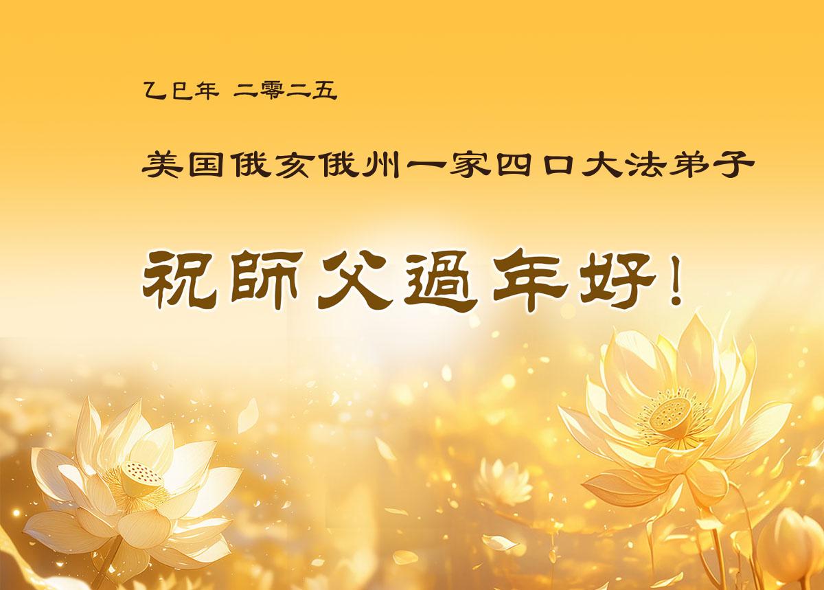 美国俄亥俄州一家四口大法弟子恭祝师尊新年快乐!