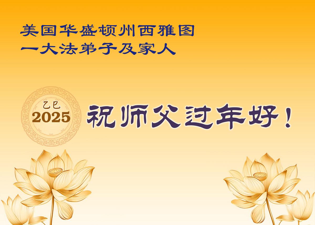 弟子在新的一年了,学好法,修好自己,干好工作,多救众生,完成使命,兑现誓约,跟师父回家! 师父您辛苦了!感恩师尊慈悲苦度! 弟子叩拜师父! 旧金山全家五名大法弟子叩拜 二零二五年一月二十八日 美国华盛顿州西雅图一大法弟子及家人恭祝师父过年好!