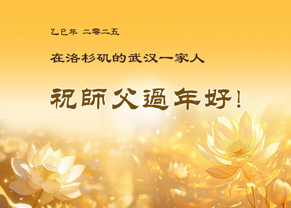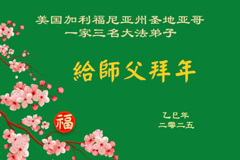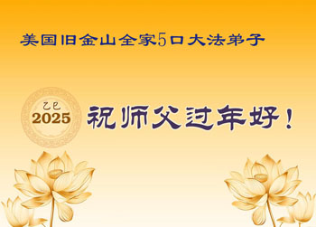 洛杉矶大法弟子一家人敬贺 二零二五年一月二十四日 美国加利福尼亚州洛杉矶一大法弟子恭祝慈悲伟大的师父过年好!