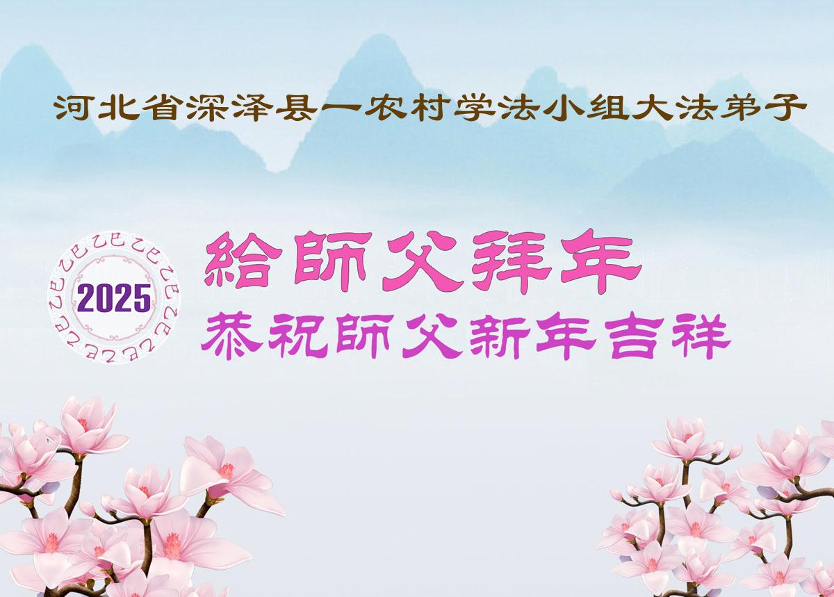 我们一定做好三件事,跟师父回家。 河北邯郸曲周四疃镇乡村大法弟子向师父拜年 二零二五年一月二十六日 河北省石家庄市深泽县一农村学法小组大法弟子恭祝师父过年好!