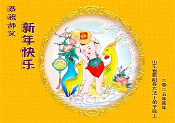 恭祝师父新年快乐! 山东省临沂市费县大法小弟子敬上 山东省临沂市蒙阴县大法小弟子恭祝师父新年快乐!