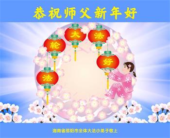 恭祝师父新年快乐! 山东省临沂市蒙阴县大法小弟子敬上 湖南省邵阳市全体大法小弟子给师父拜年!