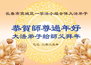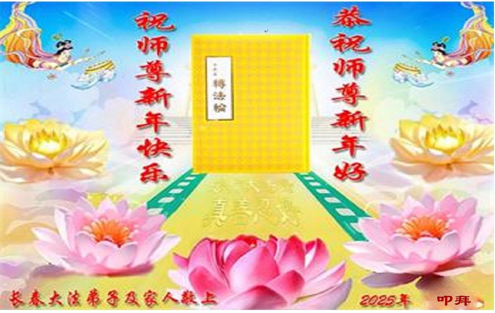恭祝师尊新年快乐!师尊过年好!师父辛苦了! 吉林长春德惠市姐妹俩大法弟子跪拜 二零二五年一月二十四日 吉林长春市宽城区一学法小组全体大法弟子恭祝慈悲伟大的师尊新年快乐!