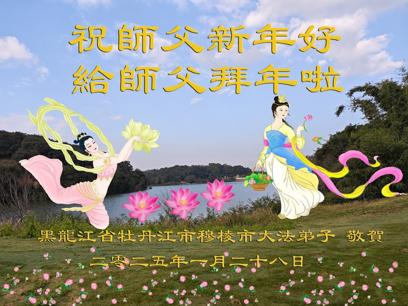 恭祝师尊新年快乐! 黑龙江省牡丹江市穆棱市大法弟子敬上 黑龙江省双鸭山市友谊县某乡大法弟子恭祝师尊过年好!
