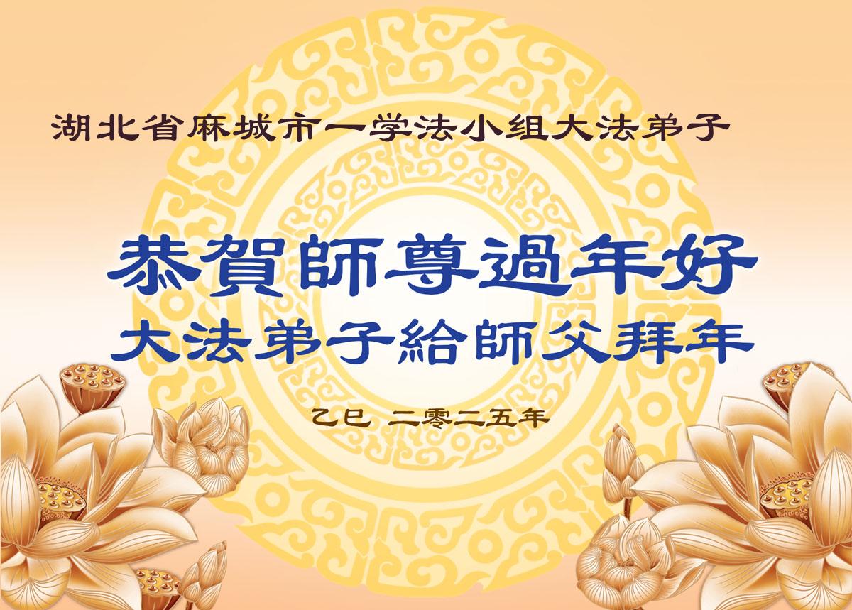 恭祝师父新年好!师父新年快乐! 湖北麻城市—大法弟子叩拜 二零二五年一月二十四日 湖北省黄冈市麻城市—学法小组大法弟子恭祝师父过年好!