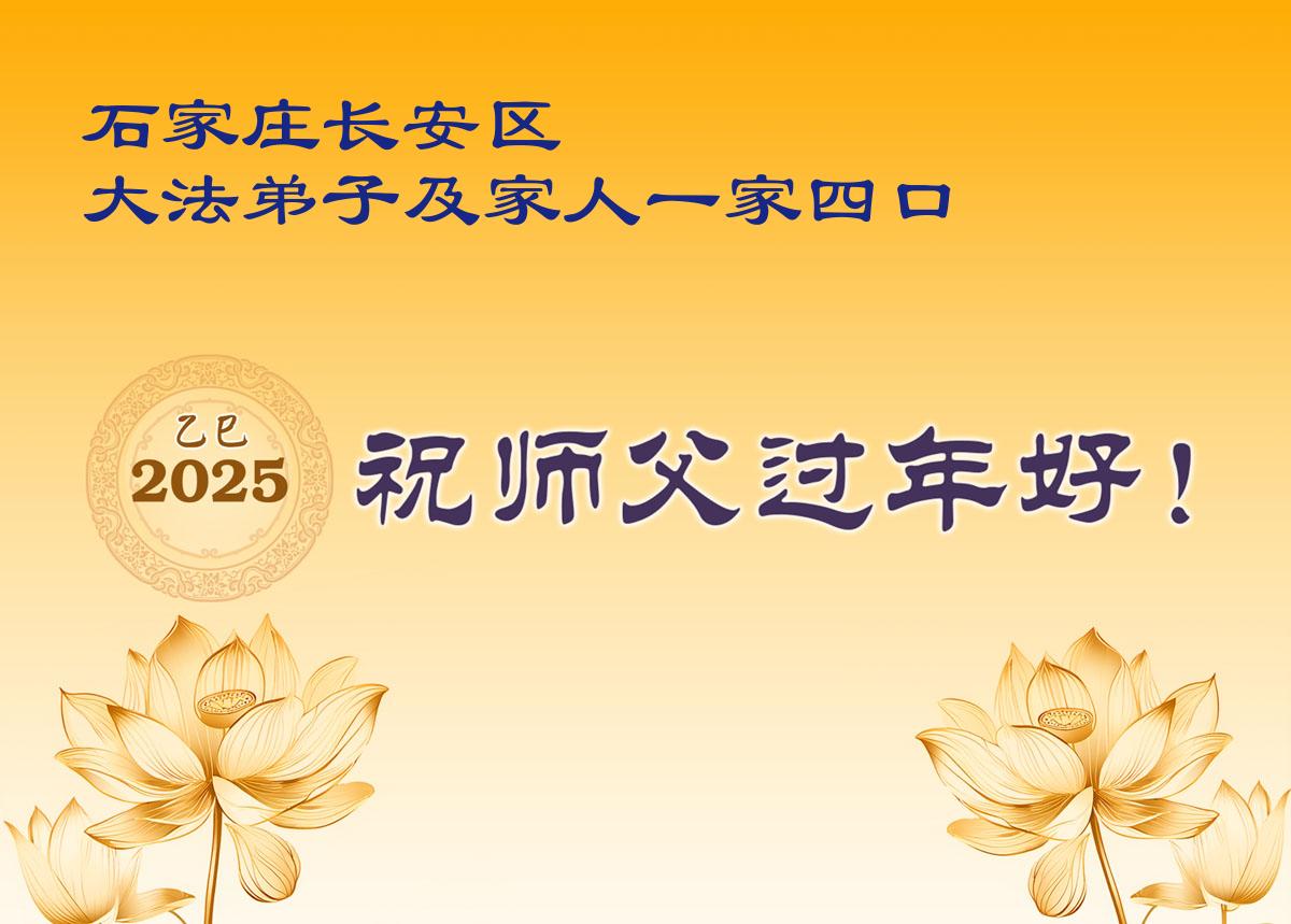 恭祝师尊过年好!谢谢师父! 河北省行唐县大法弟子叩拜 二零二五年一月二十五日 河北石家庄长安区大法弟子及家人恭祝师父新年快乐!