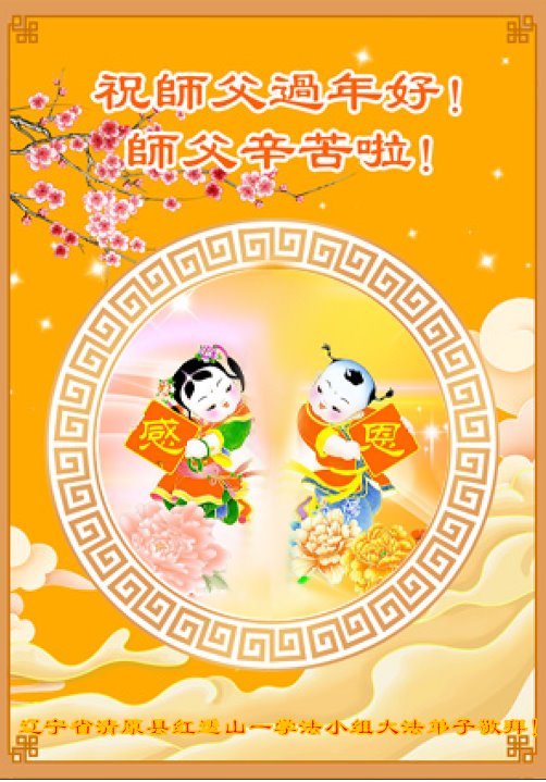 在中国新年来临之际,祝慈悲伟大的李洪志师父新年快乐!师父辛苦了! 辽宁抚顺一大法弟子向慈悲伟大的师父恭贺新年好!