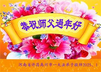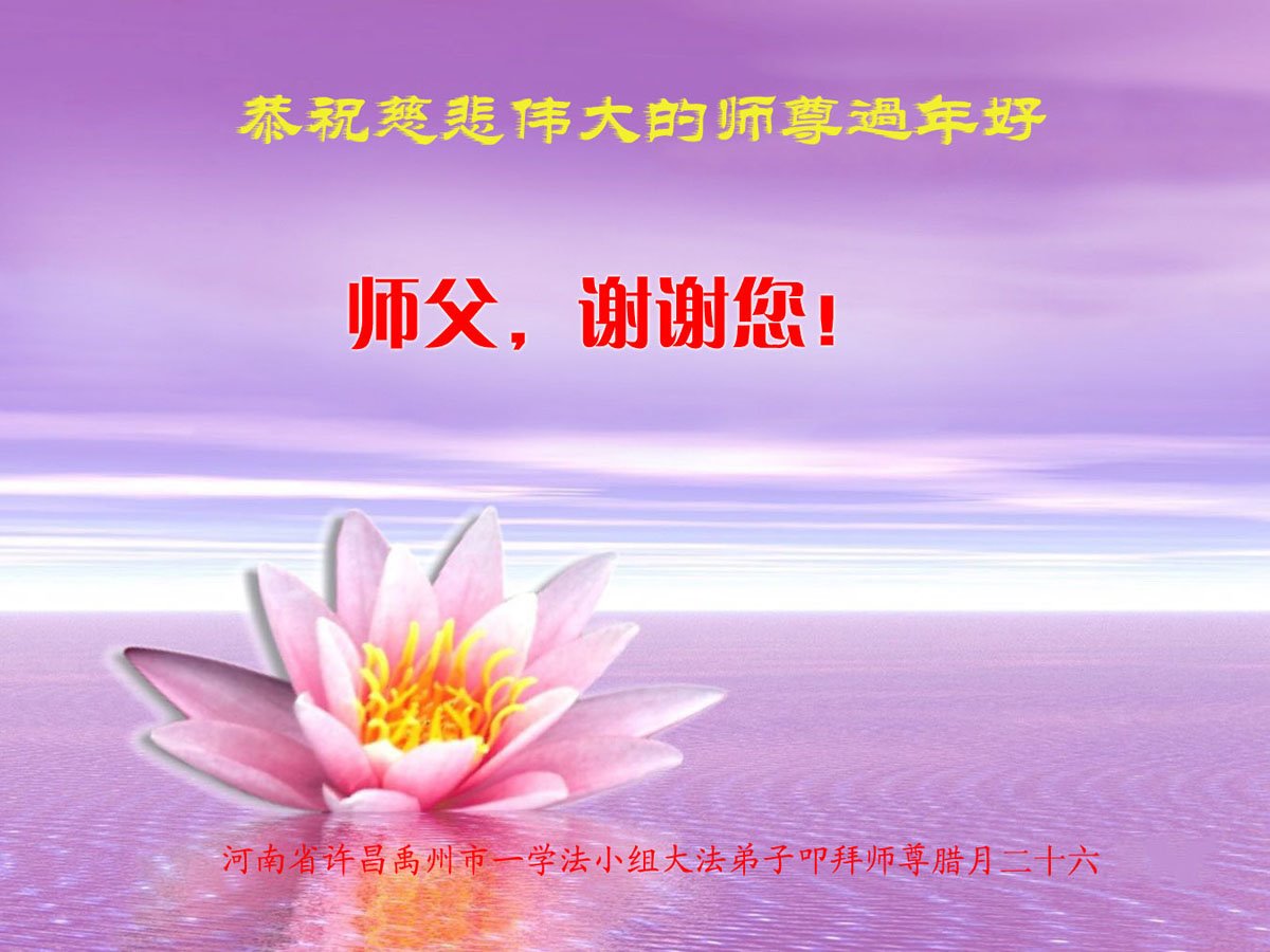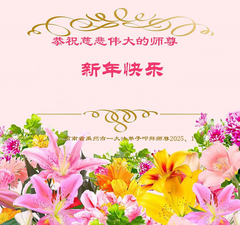 师尊新年快乐!弟子叩拜恩师!弟子一定听师尊的话,做好弟子该做的,让师尊少一份辛劳,多一份欣慰。 河南新乡全体大法弟子恭祝师父新年好!