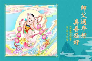弟子真诚的感恩师父,感恩大法。叩拜师父。给师父拜年啦! 祝师父过年好,过年快乐! 弟子没做好,让旧势力钻空子,出现病业假相,让师父操了不少心。叩谢师父。今后一定坚定信师信法,精進实修。过好这一关,请师父放心。 山东省烟台市龙口市大法弟子恭祝师父过年好!