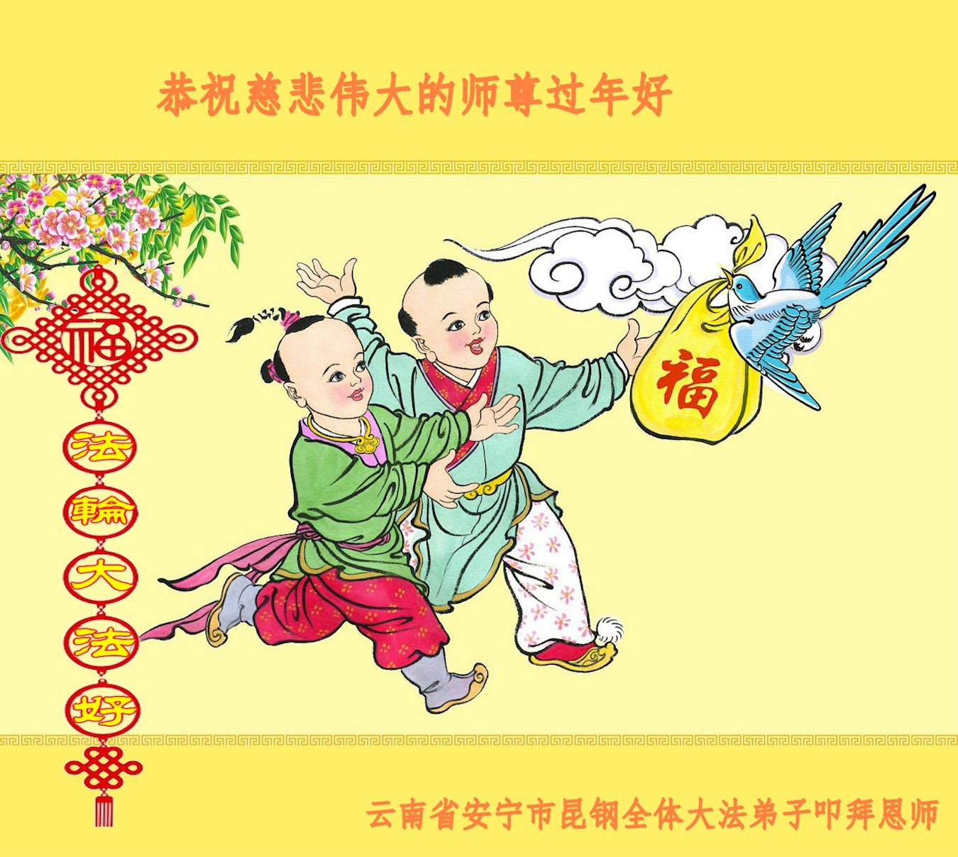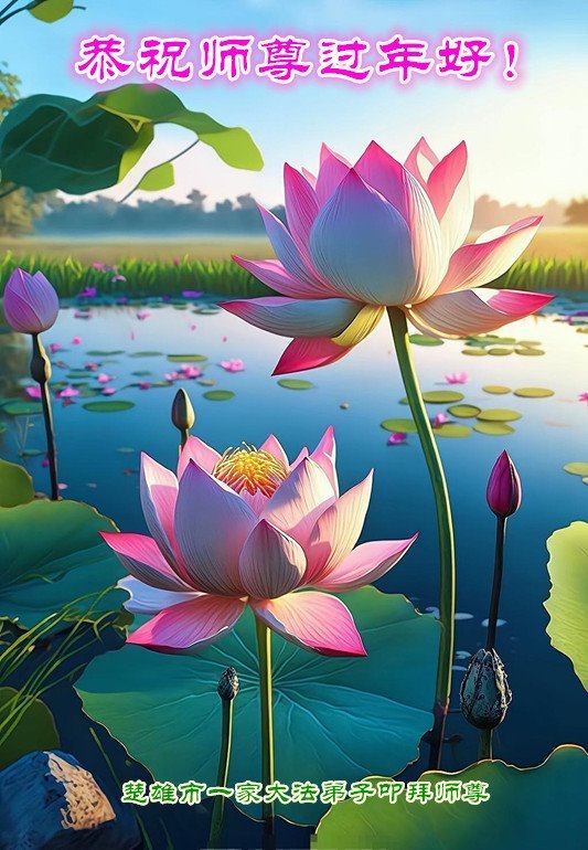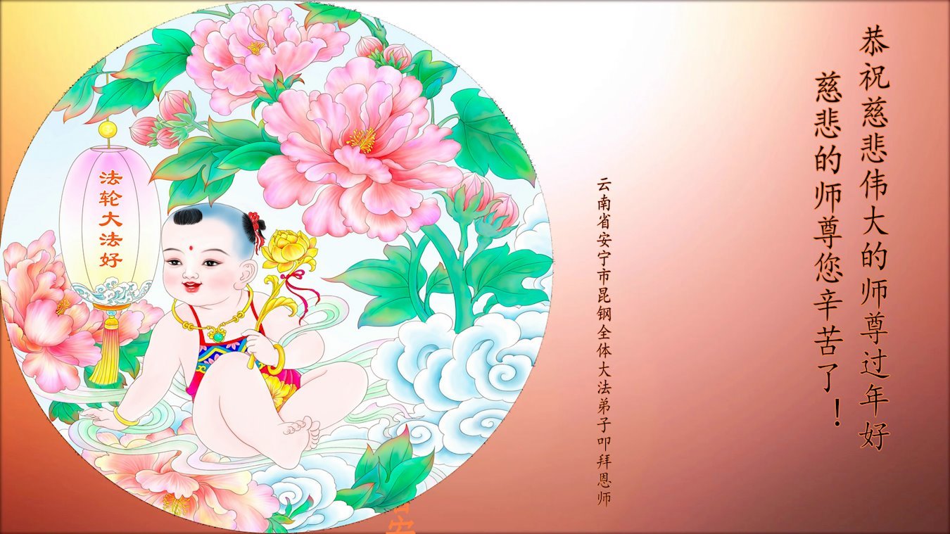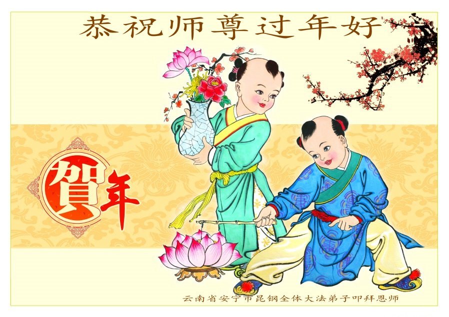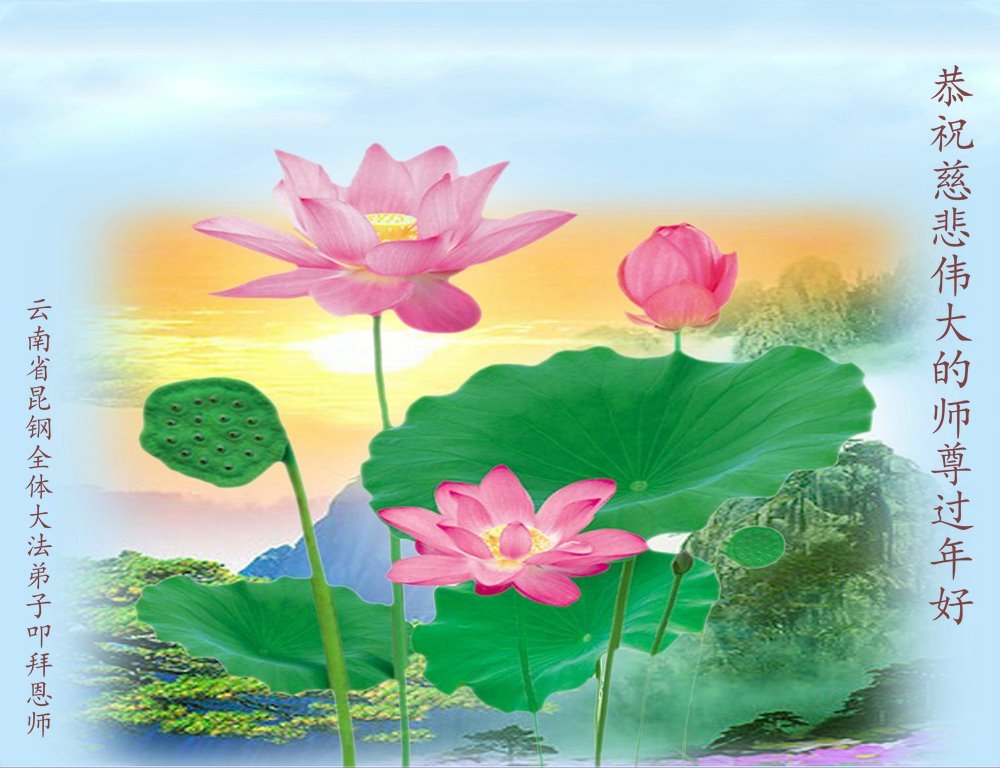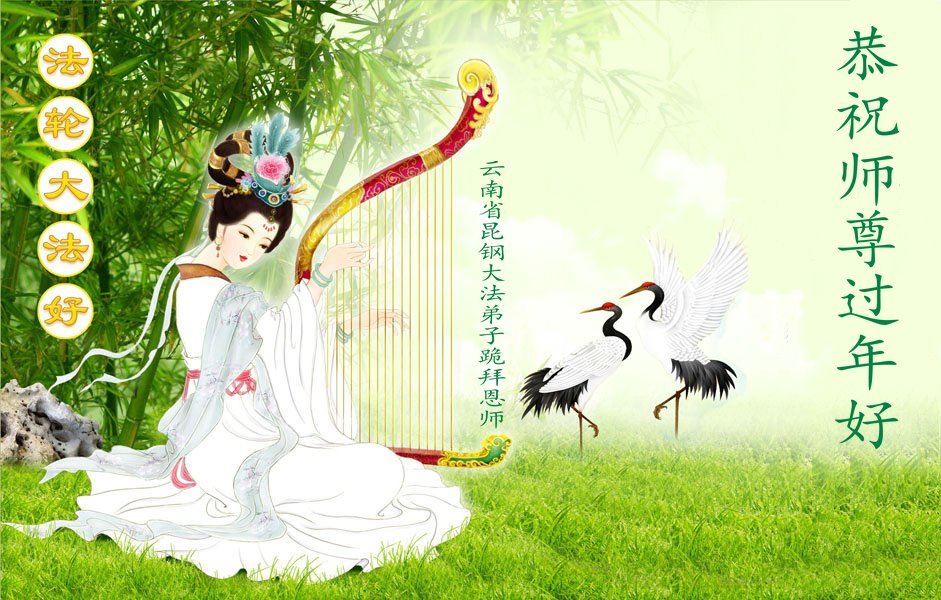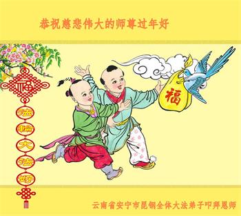 恭祝师尊过年好!师尊辛苦了!感恩师尊慈悲救度! 弟子叩拜师尊。 云南省楚雄州楚雄市一家大法弟子敬上 云南省昆明一学法小组全体弟子恭祝师尊新年快乐!