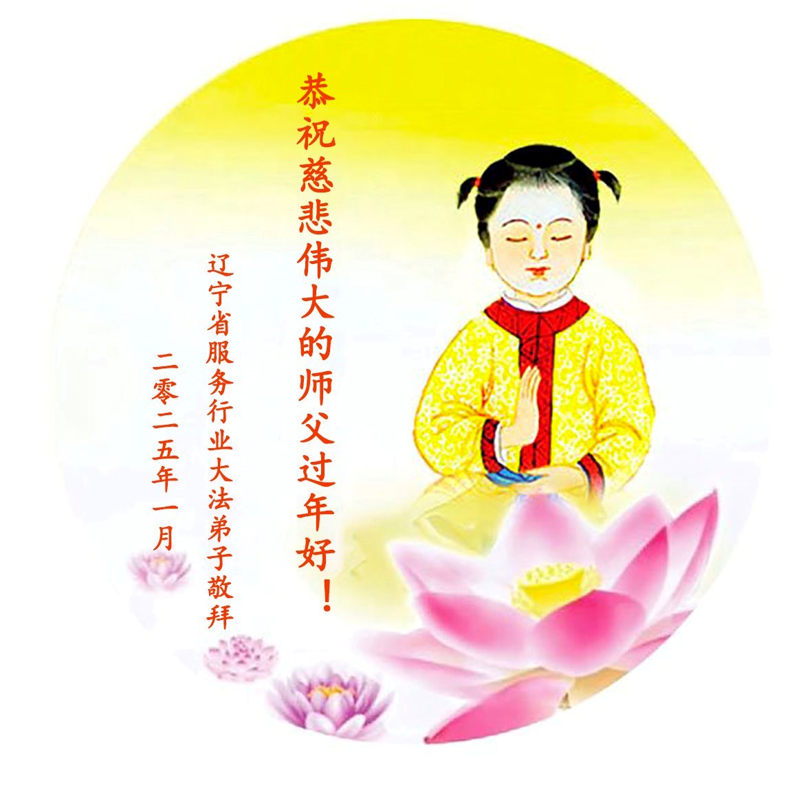 师父新年好! 感恩师尊慈悲救度!弟子们一定努力精進,做好三件事,修好自己,清除邪恶,救度众生,跟师父回家! 弟子叩谢师父! 辽宁省服务行业大法弟子恭祝慈悲伟大的师父过年好!