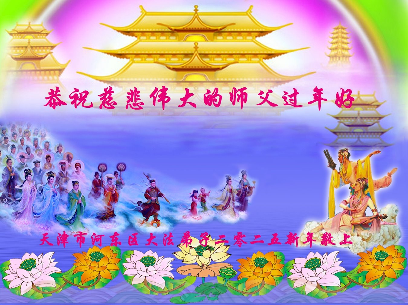 恭祝师父过年好!弟子给师父拜年啦! 天津滨海新区汉沽大法弟子 二零二五年一月二十四日 天津滨海新区汉沽一夫妻大法弟子恭祝师父新年快乐!