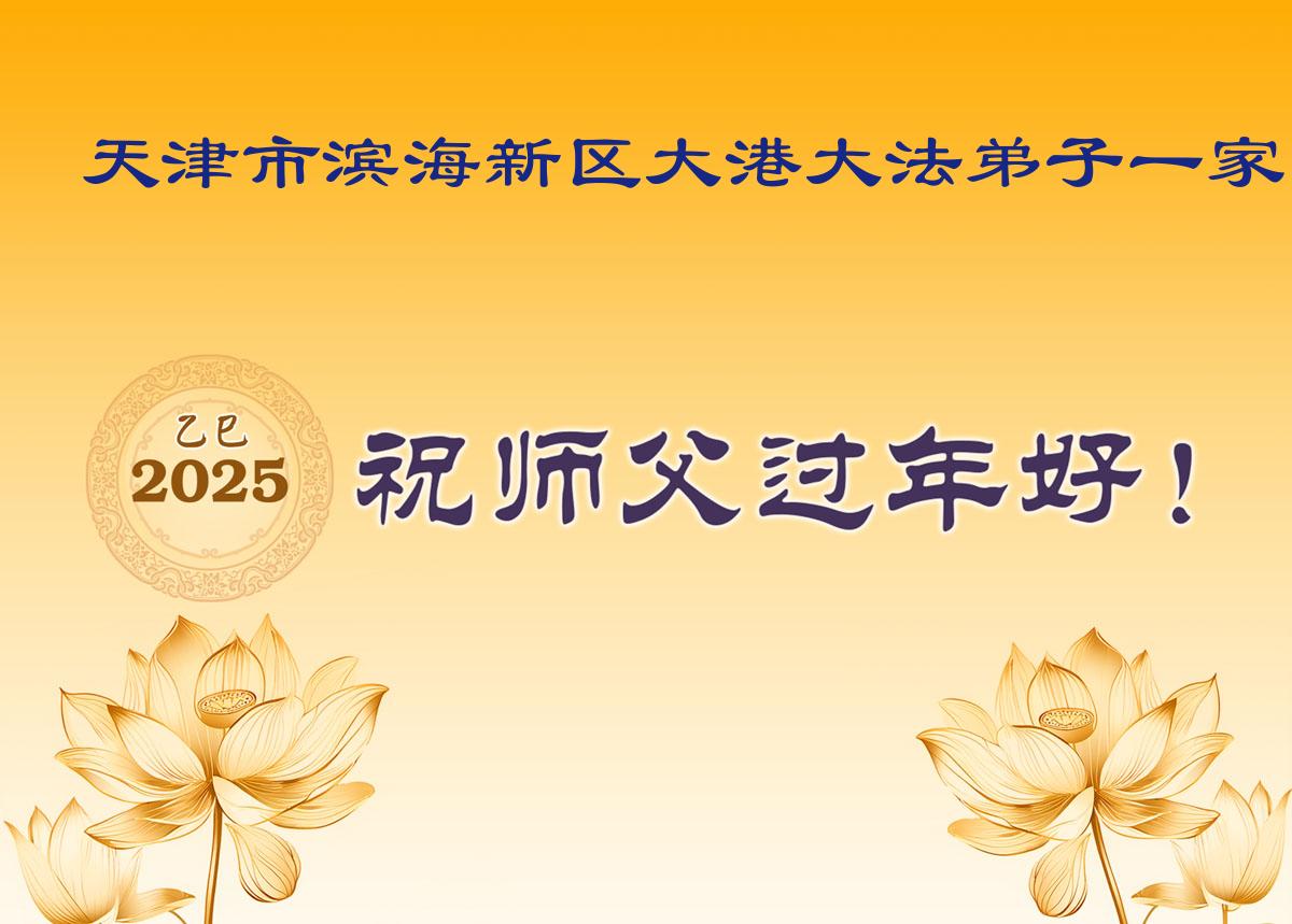 恭祝师尊新年好!师父新年快乐! 天津滨海新区汉沽大法弟子 二零二五年一月二十四日 天津市滨海新区大港大法弟子一家恭祝师尊过年好!