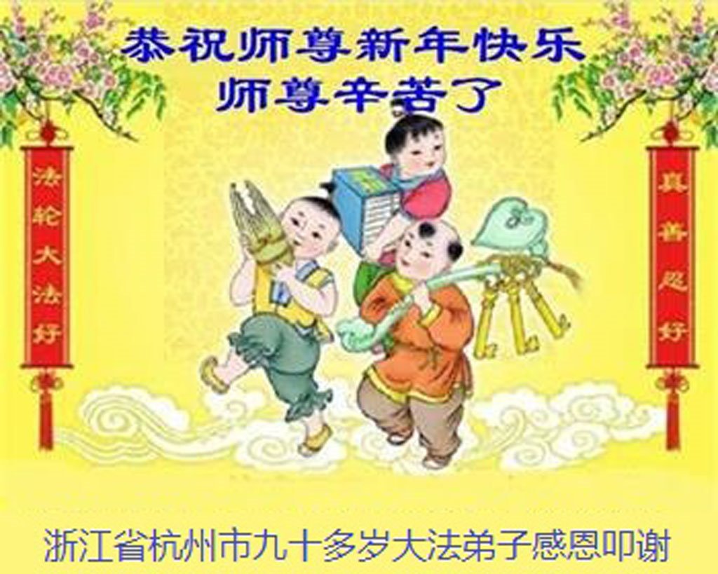 师父辛苦了!在新的一年,弟子一定要精進实修,努力多学法,学好法,在法中归正自己的一切,多救人,不负师父的苦心救度,跟师父回家。 浙江省杭州市大法弟子恭祝师父新年快乐!