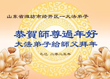 慈悲伟大的师尊过年好!祝师尊新年快乐!弟子紧跟师尊,一定走好最后的路。 弟子叩谢师尊! 山东潍坊五个学法小组大法弟子恭祝师父过年好!