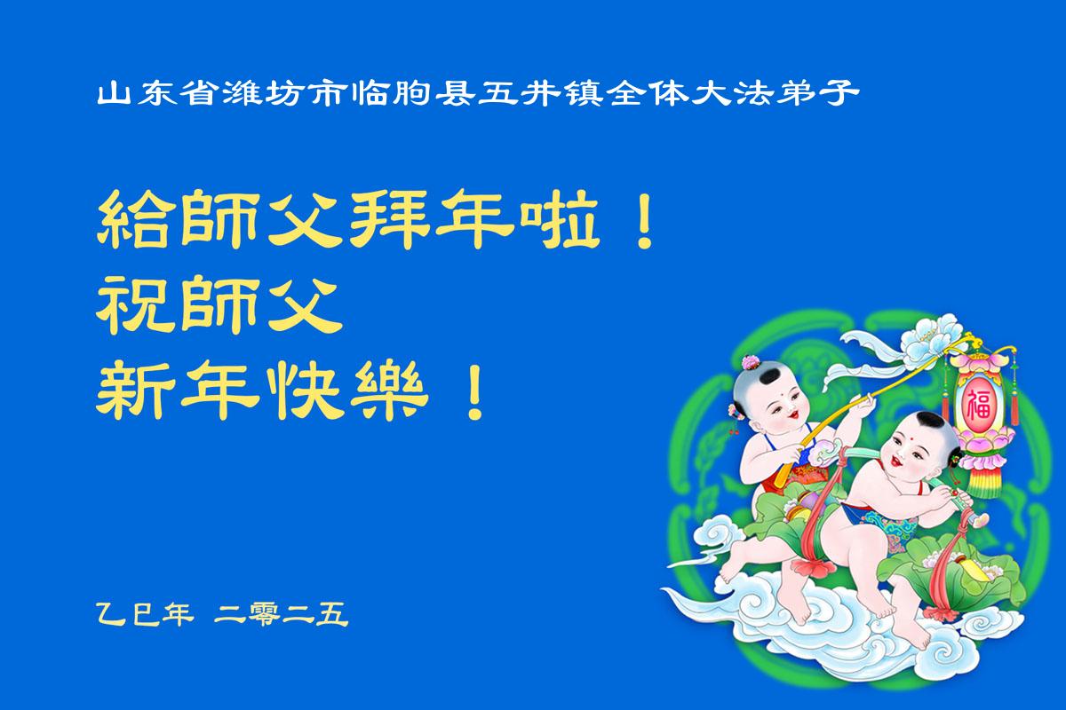 山东省潍坊市临朐县五井镇全体大法弟子叩拜 二零二五年一月二十五日 山东省潍坊市一大法弟子全家人恭祝师父新年快乐!