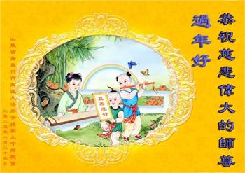 山东省青岛市市南区一大法弟子及家人恭祝慈悲伟大的师尊过年好!