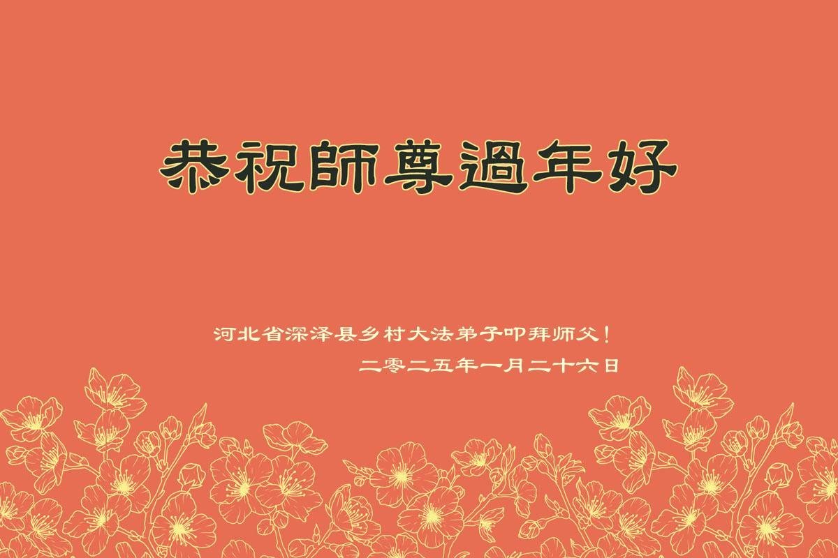 【明慧网二零二五年一月三十一日】 河北省石家庄市深泽县一农村大法弟子全家人恭祝师尊新年快乐!