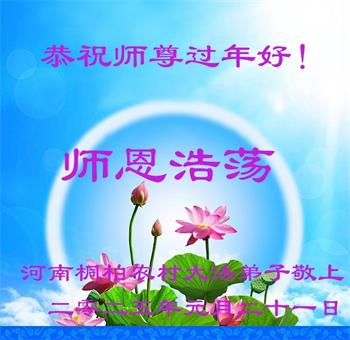 感恩师尊慈悲救度! 天津市武清区一乡村学法组全体大法弟子恭祝慈悲伟大的师尊新年快乐!