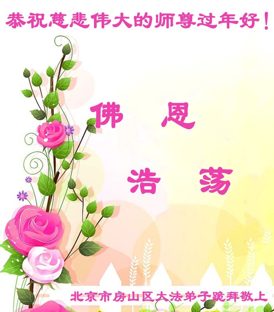 恭祝师尊新年快乐!谢谢师尊的慈悲救度,时时的看护。弟子给您磕头了! 北京昌平区一老年大法弟子恭祝师尊新年快乐!