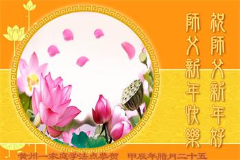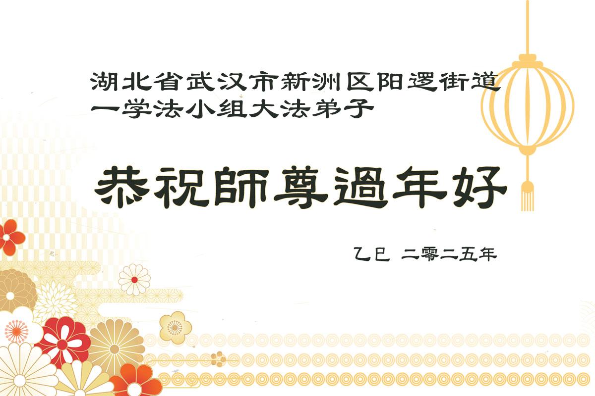 【明慧网二零二五年一月三十一日】 湖北省武汉市新洲区阳逻街道一学法小组大法弟子恭祝伟大的师父新年快乐!