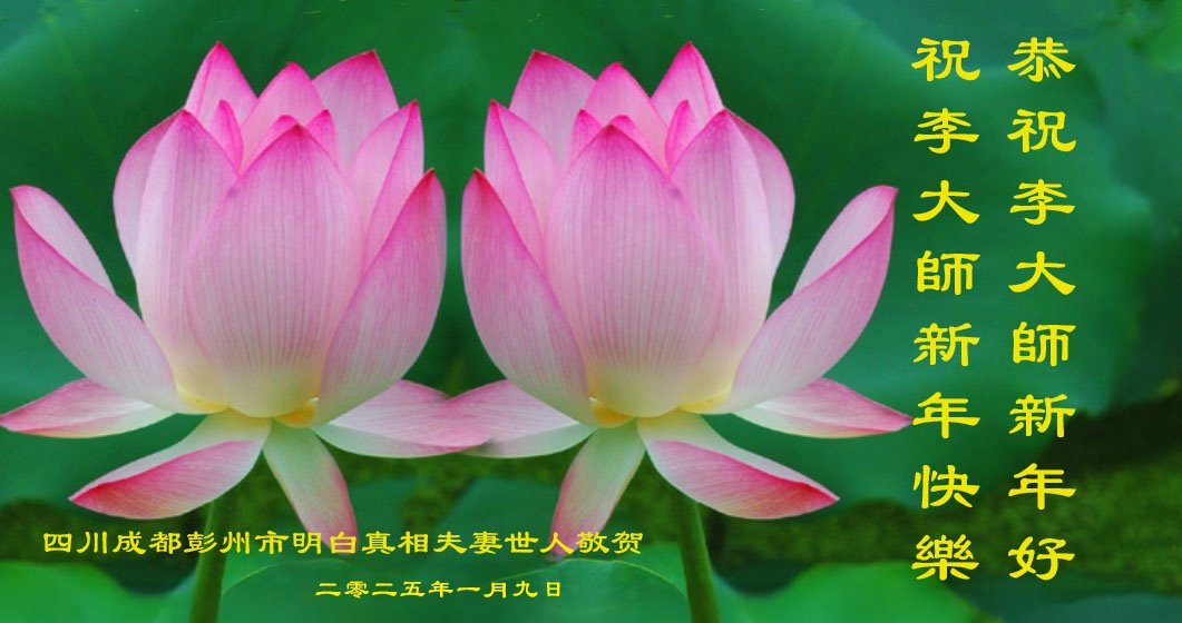 恭祝慈悲伟大的师尊过年好!师尊新年快乐!谢谢师父的慈悲救度!无限感恩师尊洪恩浩荡!我是大法弟子家属,我小时候和奶奶一起生活。我降生时母亲难产,一度没了气息,抢救过来后成了弱智儿。可是善良的奶奶爷爷把我接回家,看护我。奶奶给我听大法师父讲法录音及大法音乐,我的状态一天天好转,从此健康平安的长大。我现在是研究生。是大法师父给了我新生命,还给了我智慧。我也会按照真善忍做好人。我们全家永远支持法轮大法!我们会永远记住法轮大法好!真善忍好! 叩拜师尊! 河北省张家口赤城县大法弟子家属全家敬上 二零二五年一月十八日 四川省成都彭州市明白真相夫妇世人及全家恭祝李大师新年好!