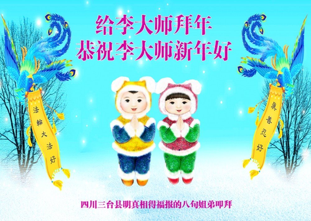 | 【明慧网二零二五年一月三十一日】(明慧网记者综合报道)法轮大法是宇宙大法,法力遍布洪微,神奇殊胜。相信法轮大法好而得到福报、善报者无数,他们无限感恩洪传大法于人间的李洪志师父。在二零二五年乙巳新年来临之际,中国大陆各地受益民众给李大师发来的贺词贺卡,表达自己的感恩之情。 河北大法弟子家人:“我降生时母亲难产,我一度没了气息,抢救过来后成了弱智儿。可是善良的奶奶爷爷把我接回家,看护我。奶奶给我听大法师父讲法录音及大法音乐,我的状态一天天好转,从此健康平安的长大。我现在是研究生。是大法师父给了我新生命,还给了我智慧。我也会按照真善忍做好人。我们全家永远支持法轮大法!” 河北石家庄市民写道:“我和我弟妹本来已经计划做试管婴儿了,因为我们诚念大法好,二零二四年都怀孕了,两个宝宝都将在二零二五年出生。我在怀孕期间得了泌尿结石,由于结石太大,医院多个大夫都说不可能自然排出来,但怀孕不能做CT,也不能做碎石手术。今天又去复查,结果已经看不见石头了。这都是我诚念“法轮大法好、真善忍好”得的福报啊!” 吉林长春大法弟子亲属说:“我曾经患多种疾病,几经住院治疗不见好转,最后一次住院全身浮肿,透析多次,家里的钱几乎全花光了,眼看要不行了,医院撵我回家了。这时,修大法的小姑姑来看我,帮我退出了邪*党-的团队组织,教我们全家人都诚念‘法轮大法好、真善忍好’,结果我如同起死回生一般,真的一天比一天好,全家人都感谢大法师父救命之恩!” 吉林长春大法弟子:“我的哥哥就是医生,花了许多医药钱,却治不好我的病。大法师父没收过我一分钱,却给了我一个健康的身体。全村的人都知道我当年是要死的人,现在身体还很健康。中共污蔑大法的谎言是不得人心的。” 中国各地明真相受益者恭祝李洪志师父新年好! 四川三台县明真相得福报的八旬姐弟恭祝李大师新年好!