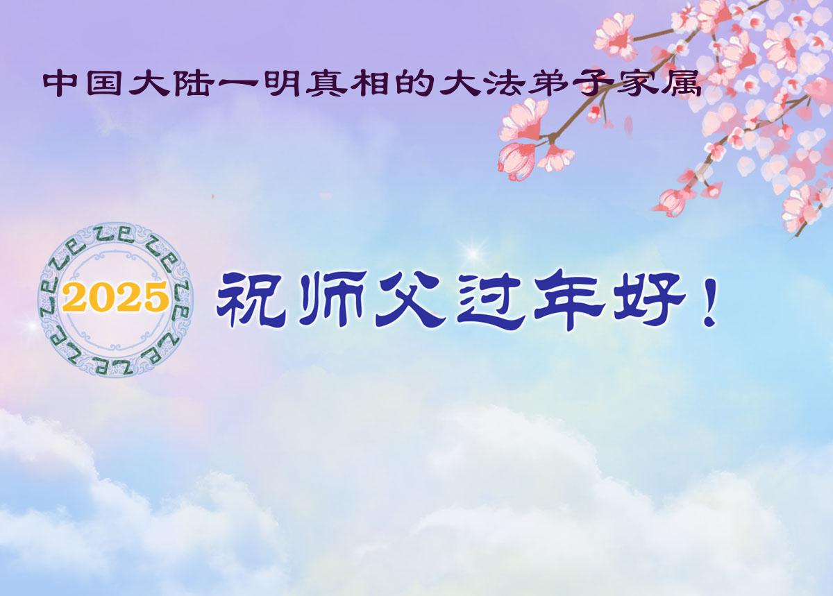 恭祝李大师过年好!我们是大法弟子的家属,我们是亲身受益者。我们清楚的知道,李大师时时刻刻都在保护着每一个生命。我们一定支持大法,同化大法,永远和大法弟子站在一起。 祝李大师新年快乐!万事如意! 辽宁省朝阳市建平县大法弟子家属六人敬上 2025年1月4日 大陆一明真相的大法弟子家属恭祝李大师新年快乐!