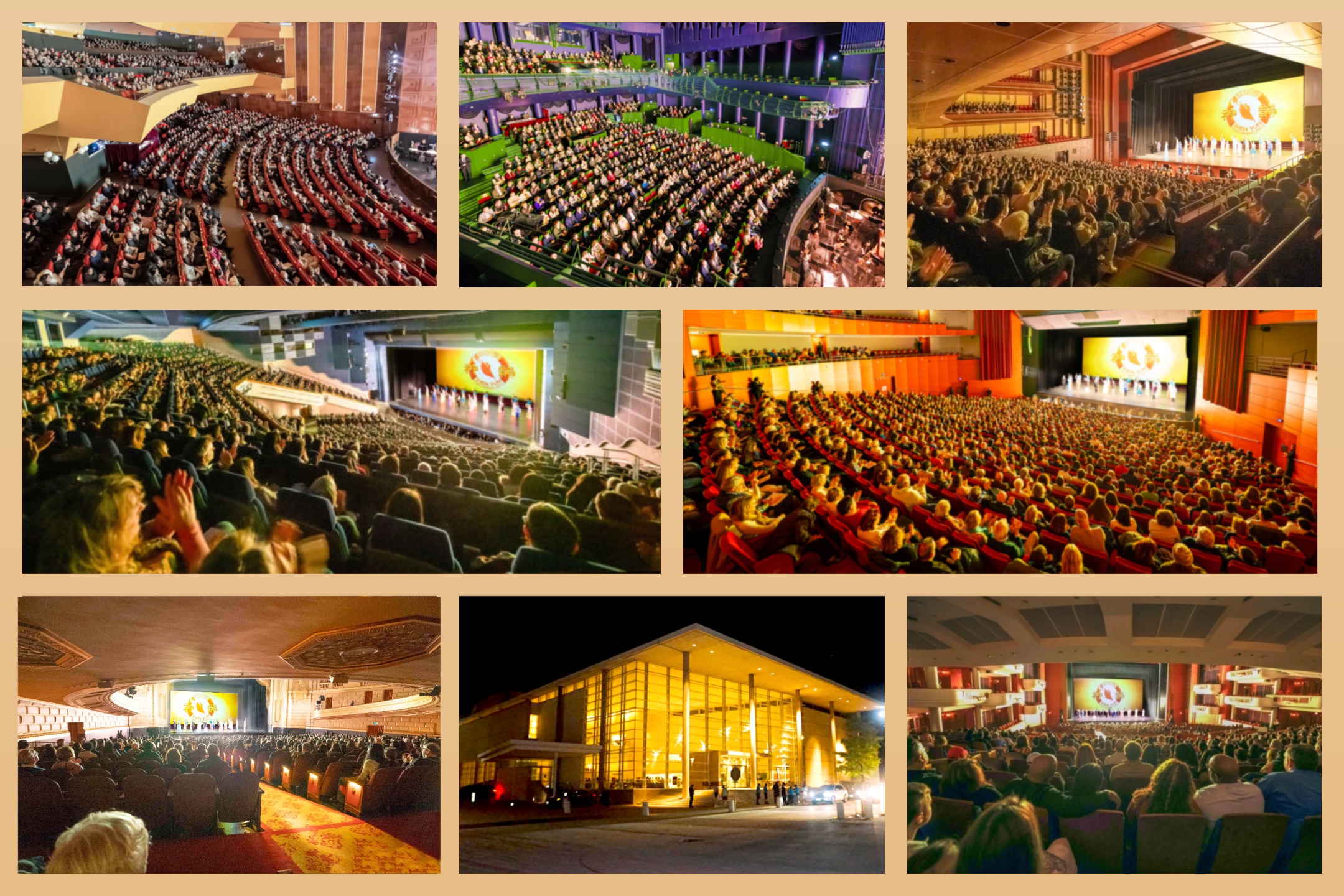 | 【明慧网二零二五年一月七日】(明慧记者章韵综合报道)新年象征着希望与重生。二零二五年一月三日新年伊始,神韵八个艺术团及八个艺术团乐团在北美、欧洲、亚洲的八个城市同步演出,盛况空前。 神韵艺术团为三大洲观众带来一场跨越时空、启迪人心的艺术盛宴。从天上到人间,从过去到未来,亘古神话,历史传奇,一幕幕动人的画卷在舞台上徐徐展开。 有观众深刻感受到创世主对人类倾注的深厚的爱;有观众感谢神韵传递强大神性信息;有精英感悟“神已回来”。 观众还由衷的向神韵艺术总监表达敬佩与感恩:“非常感谢您持续编排这台演出,并且展现出如此的精诚投入,这一切都在演员身上得到了呈现。您的成就卓越非凡!”  图1:二零二五年一月三日,神韵在全球八个城市同日演出,盛况空前。(第一排自左至右)意大利撒丁岛首府卡利亚里诗情剧场、波兰波德拉谢歌剧院与爱乐音乐厅、日本ROHM京都剧院;(第二排自左至右)英国伯明翰ICC音乐厅、法国普罗旺斯大剧院;(第三排自左至右)旧金山歌剧院、美国达拉斯艾思曼中心、劳德代尔堡布劳沃德表演艺术中心。(大.纪.元;合成图片) |