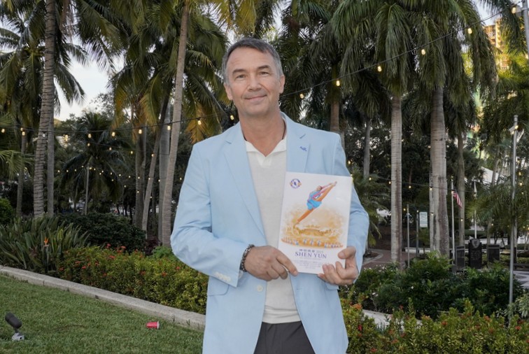 一家跨国公司副总裁马克·莱歇诺(Mac Reichenau)说:“我觉得这次演出的主题传递了非常强烈的信息,让我深深感动。我很感激这场演出背后的意义,也非常享受这次的观赏经验。” “能通过这场演出更深入了解过往的历史,对我来说非常有意义。” 莱歇诺说, “我认为演出表达了一种反抗,共产主义政权的压迫并不能长久。他们虽然不能在中国自由表达,但仍然通过这种方式,让世界了解真正的中国文化精髓。” “前半场那个关于(中共)罪恶的节目,以及最后一个场景我觉得特别有意义,当灾难降临时,神来了,平息了海啸。” 他说,“我感觉有一位伟大的创世主,高于我们所有人,正在俯视着我们,保护着我们。” 公司老板:神韵唤醒内心和创世主的连接 成为更好的人  图3:二零二五年一月四日下午,公司老板维克托·洛迈耶(Viktor Lomeyer)观赏了神韵世界艺术团在美国佛州劳德代尔堡的布劳沃德表演艺术中心的第二场演出。(大.纪.元;) |