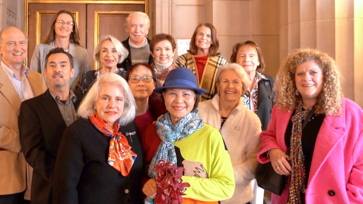 “我感觉神就在身边,艺术家们展现的舞蹈,让我觉得自己更接近了神。” 波兰前驻华外交官伊莎貝拉·茱莉亞·捷克夫斯卡(Izabela Julia Czechowska)说。 捷克夫斯卡曾在中国成都的波兰驻中国领事馆工作数年,在那段期间,作为外交使团的代表,曾受邀观看过许多演出。然而,神韵的演出给她带来了特别的感受。她说:“这场演出太美了!就象从另一角度重新触摸中国文化。” “神韵的呈现方式与我在中国看到的演出有所不同。我特别喜爱这场演出,尤其是其中展现神性内涵的部份。作为一个虔诚信神的人,神韵所呈现的中国传统文化中的神性,令我感到无比美妙,我仿佛触摸到了天堂。” “我感觉神就在身边。艺术家们展现的舞蹈,让我觉得自己更加接近了神。”她说,“我是一个非常有‘灵性’的人,我能感应到(这股能量)。舞台上的能量弥漫在整个(剧场)空间,甚至充盈在我的体内。这股能量让我感到内心非常温暖,并伴随着全身的震颤。” 她说:“我很感动。在波兰,甚至在整个欧洲,人们也信仰神,但从未以这种方式展现出来。神韵呈现的神圣能量实在太美好了!神是存在的。只是如今在西欧,人们逐渐远离神,这令人感到遗憾。所以,你们(神韵艺术家们)的工作真的意义非凡!我坚信神是存在的,并且很快会回来,或许他已经以某种形式回来了。” 带十八人观神韵 加州一社团华裔会长:想让他们了解法轮功  图8:二零二五年一月四日下午,美国加州诺瓦托(Novato)共和党妇女联合会会长方丽玲(前排左二),带领会员一共十八人,观赏了神韵北美艺术团在加州旧金山歌剧院的演出。(新!唐!人:电视台) |
