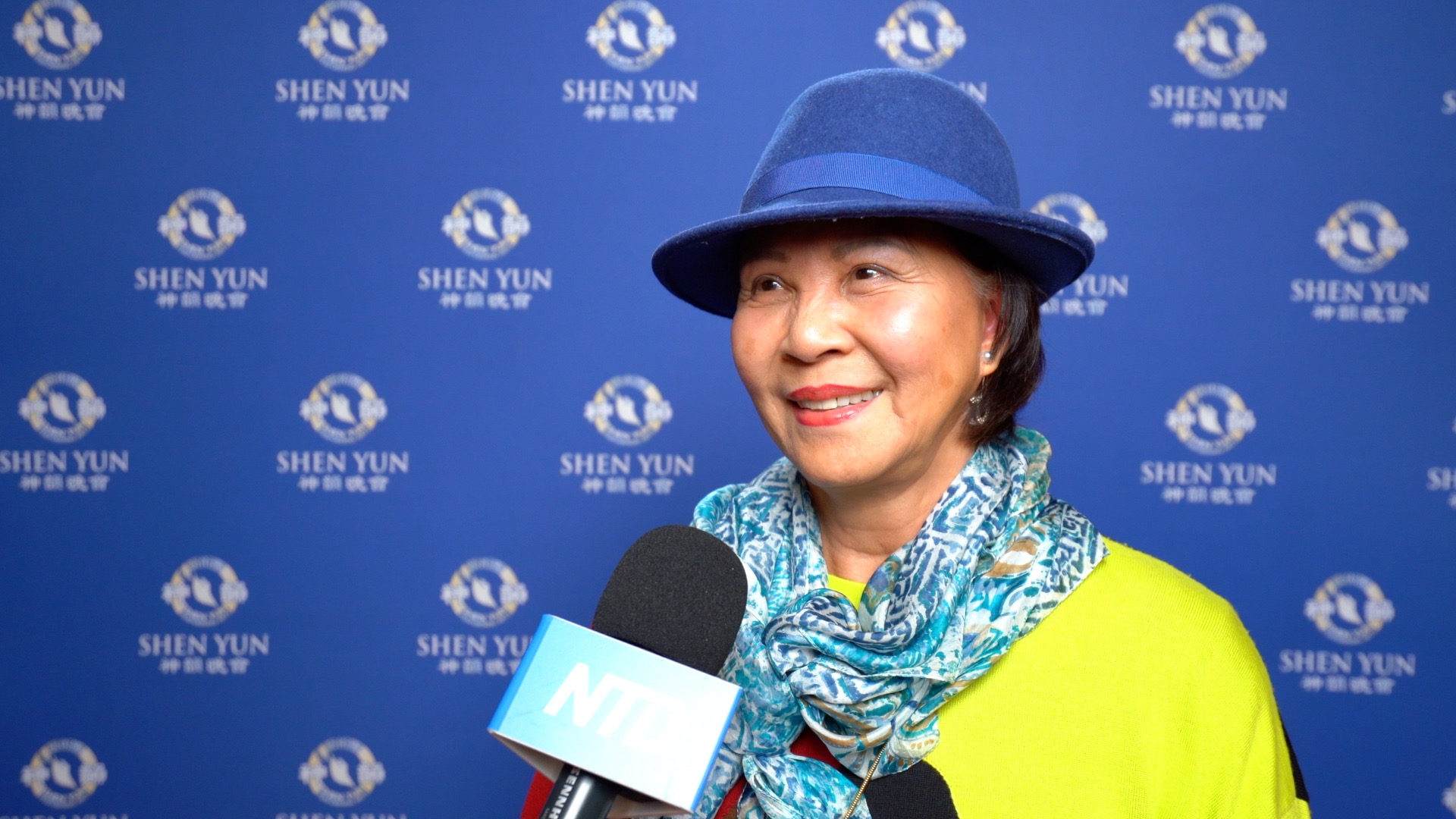 图9:二零二五年一月四日下午,方丽玲观赏了神韵演出后表示,身为多年神韵忠实粉丝,演出让她热泪盈眶。(新!唐!人:电视台) |
