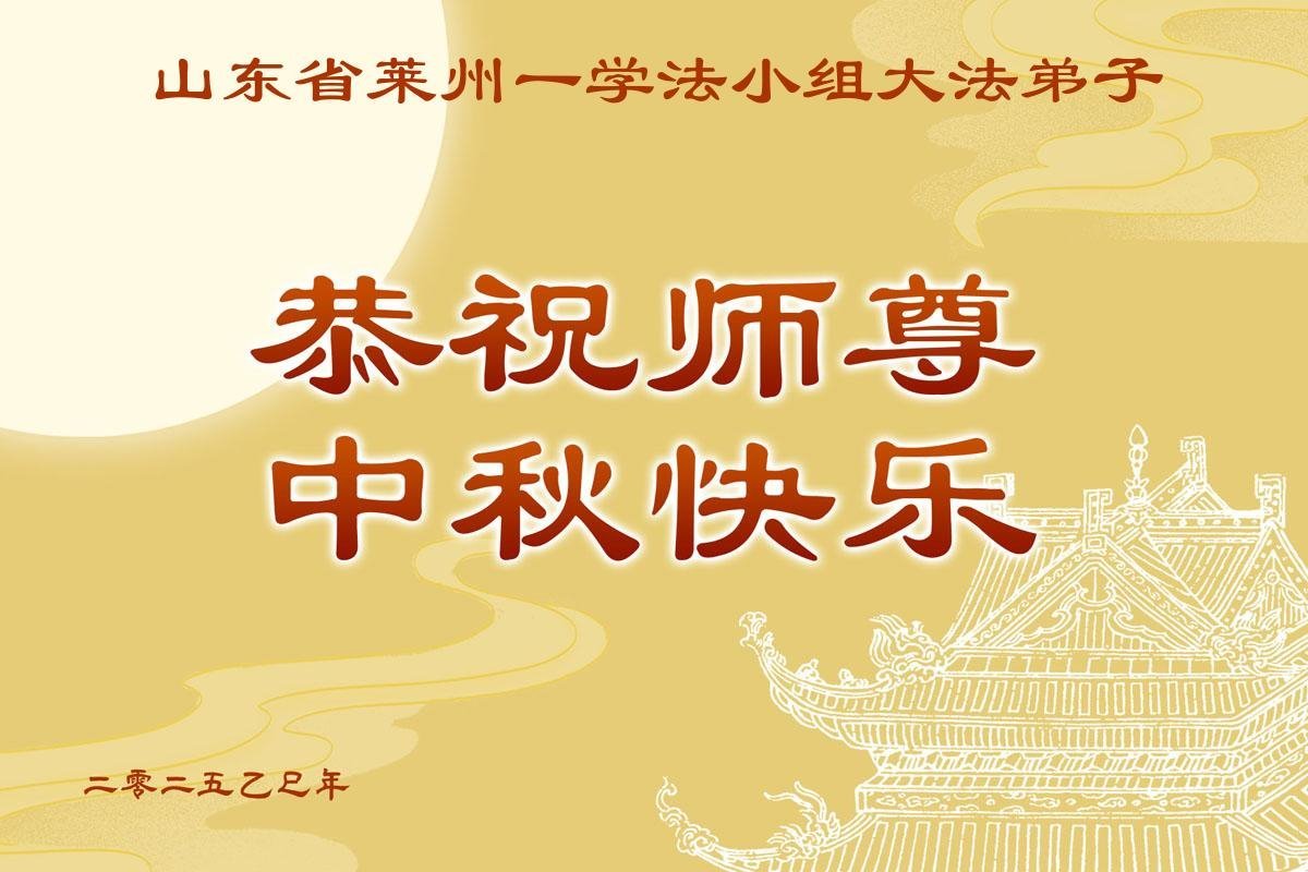 恭祝慈悲伟大的师尊中秋节快乐! 山东省莱州全体大法弟子敬上 二零二五年九月十七日 山东省烟台莱州全体大法弟子恭祝师尊中秋节快乐!