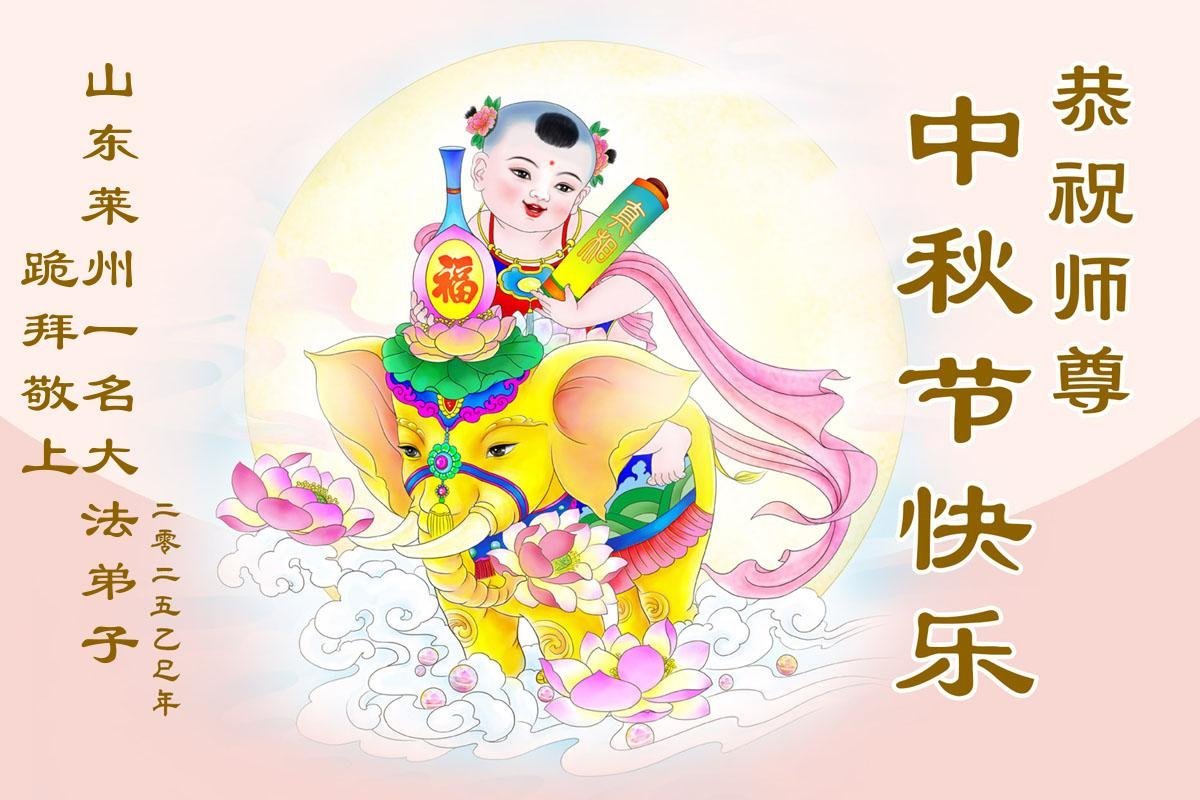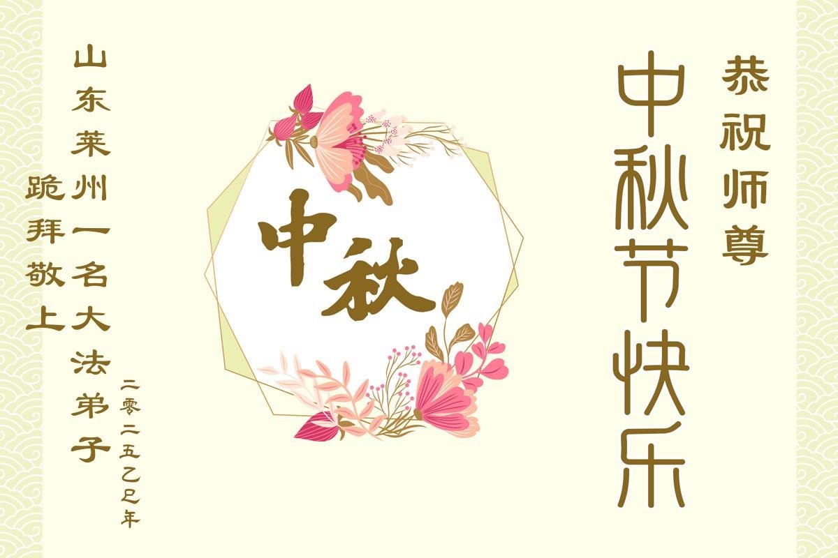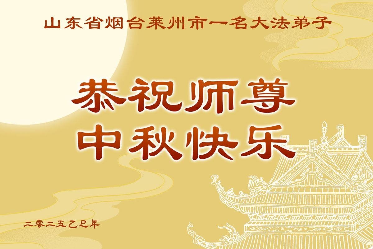 【明慧网二零二五年十月一日】 山东省莱州一名大法弟子恭祝慈悲伟大的师尊中秋节快乐!