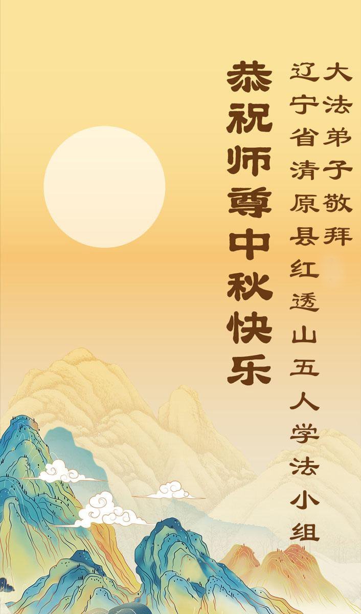 恭祝师尊中秋快乐! 辽宁省清原县红透山一学法小组大法弟子四人敬上 辽宁省抚顺市新宾县一学法小组大法弟子恭祝师尊中秋快乐!