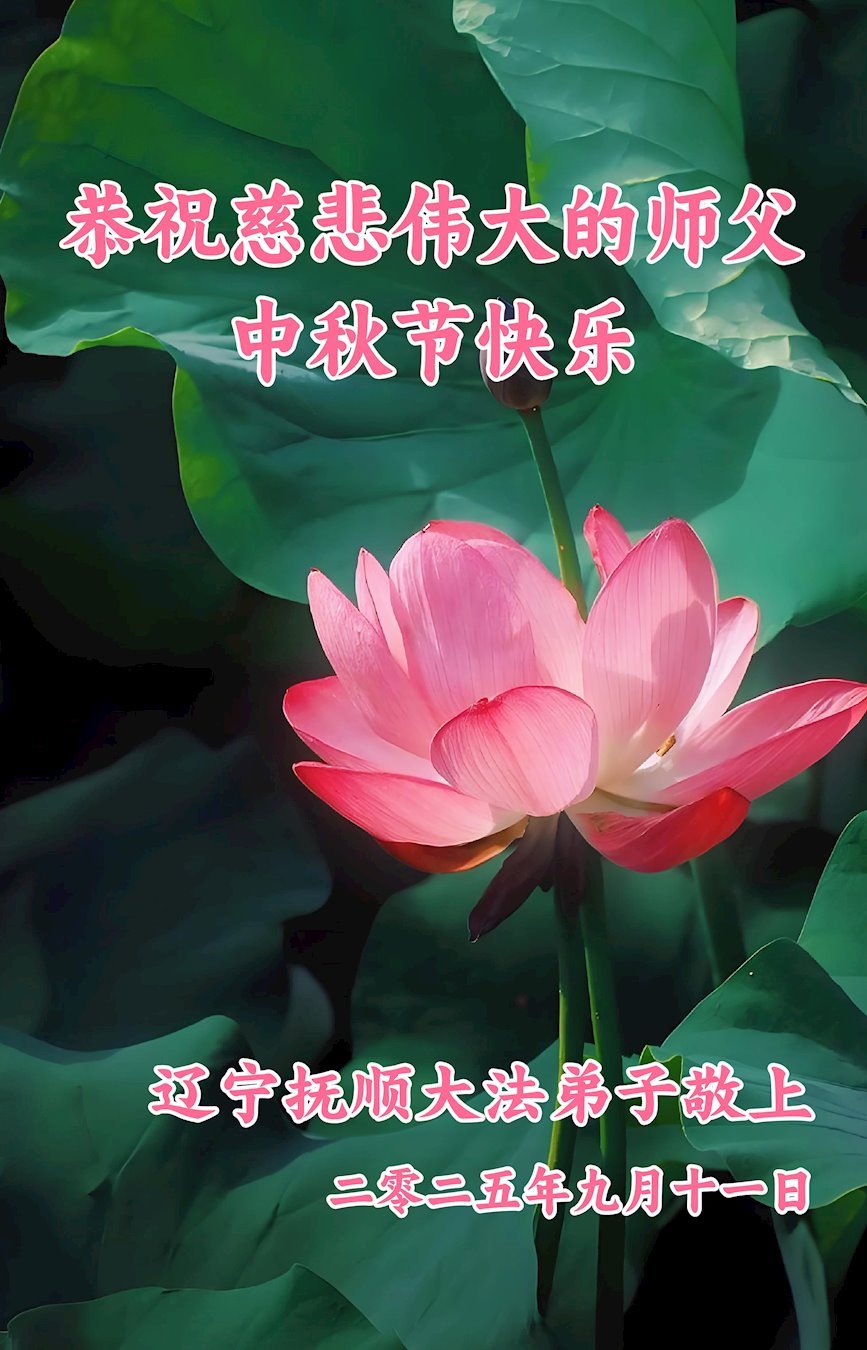 【明慧网二零二五年十月一日】 辽宁省抚顺市望花区大法弟子恭祝慈悲伟大的师尊中秋节快乐!