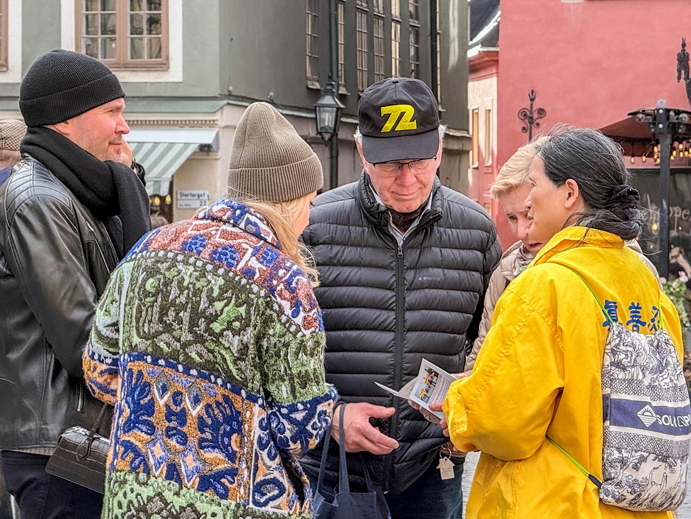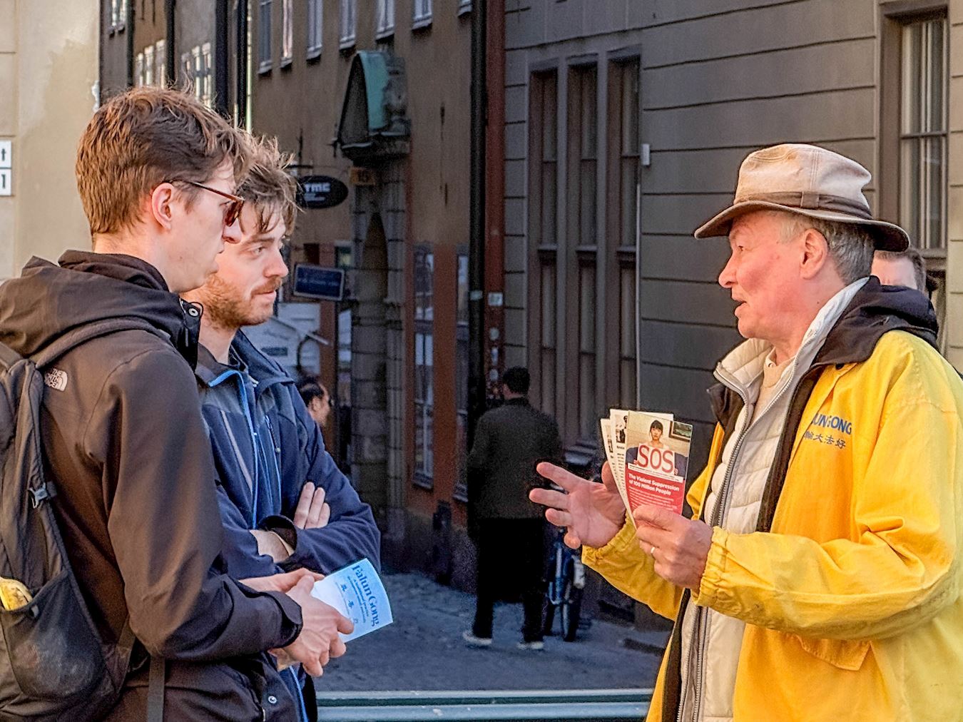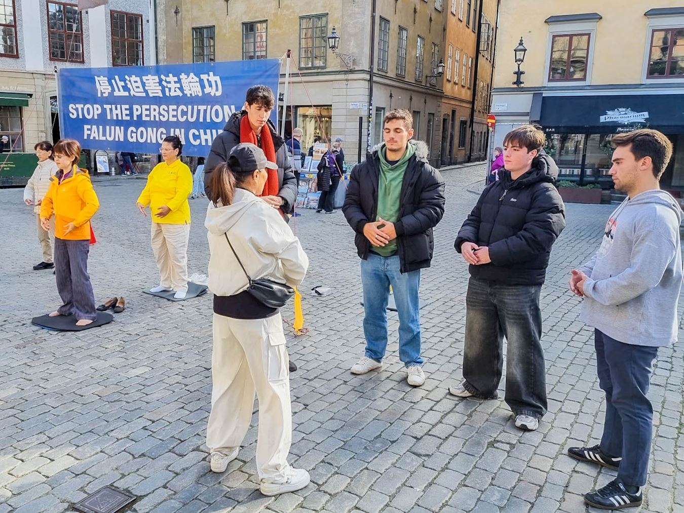 华裔先生:最佩服法轮功 十月十二日周日下午,在诺贝尔博物馆前真相展位前,法轮功学员在演示五套舒缓祥和的功法。有学员向来来往往的行人派发大法传单,同时征集反迫害签名。有很多游客在与学员的交谈中了解了真相,还包括不少中国人。现场气氛温馨祥和。一位六十多岁来自德国的华裔男士很兴奋地告诉学员:“真没想到在这里能遇到你们,我太高兴了!我是新!唐!人:、大.纪.元;、希望.之声忠实的读者,早就了解了法轮功真相,我很佩服你们!” 他接着说:“我最佩服的就是法轮功!中共就是个魔鬼,它祸国殃民迫害死八千万中国人。尤其是这么多年对法轮功的迫害这么严重,但你们还那么坚定自己的信仰,还在坚持不懈地向世人讲真相,真是令人钦佩。”他告诉学员:“今天心生一念:我要修炼法轮功。”并表示:“我遗憾的是:至今还没看过一遍《转法轮》。”学员告诉他可以到明慧网站上去免费下载。他连连点着头。“我回去一定要先读一遍指导修炼的这部书,然后学炼功动作。” 大陆青年:希望大陆人早日了解真相 一位来自大陆从事电商行业的年轻人,一见到真相展位就对学员表示,她知道法轮功非常好,中共干了很多的坏事。“在国内我经常翻墙看新闻,看法轮功学员的自媒体。今年在美国住了半年,了解了很多中共迫害法轮功,活摘法轮功学员器官以及跨国镇压法轮功的罪行,中共真的是太邪恶了。”她说:“我早就知道那个所谓的天安门自焚是骗人的,那是中共为迫害法轮功编造导演的假新闻。” 她还谈道,以前对于法轮功学员揭露中共活摘器官的真相很多人都不相信。这次中共的“九三阅兵”直播中,大家都听到了习*近*平与普京在探讨“器官移植”可以“长生不老”的话题。她表示:“即使现在中共一直在极力掩盖真相,稍微有点脑子的人心里应该都明白了,发生在我们身边的那些离奇事情,比如:有一位高中生突然就失踪了,再也找不到了,那肯定是被杀了,器官被活摘移植给那些高官了。” 她说:“现在大陆的很多人都或多或少地了解一些真相,其实冷静下来,把这些零散的碎片整理起来就能找到真相。”她表示非常感谢法轮功学员坚持不懈地传播真相,同时希望越来越多的大陆人早日了解真相。