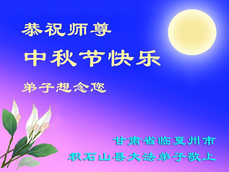 恭祝慈悲伟大的师尊中秋快乐! 甘肃省武威地区古浪县大法弟子敬上 甘肃省兰州市安宁区大法弟子恭祝慈悲伟大的师尊中秋快乐!